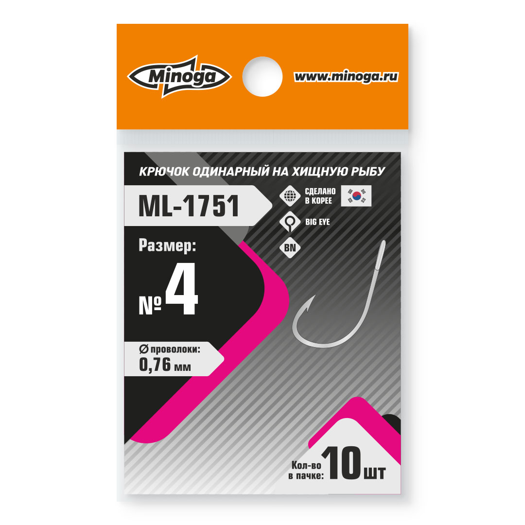 Крючок Minoga ML-1751 №4 (10 шт)| для блесен | Форель