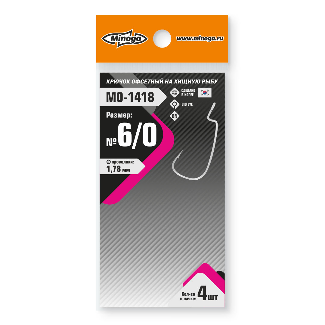 Крючок Minoga MO-1418 Офсетник №6/0 (4 шт)