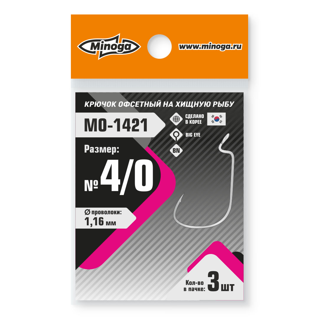 Крючок Minoga MO-1421 Офсетник №4/0 (3 шт)
