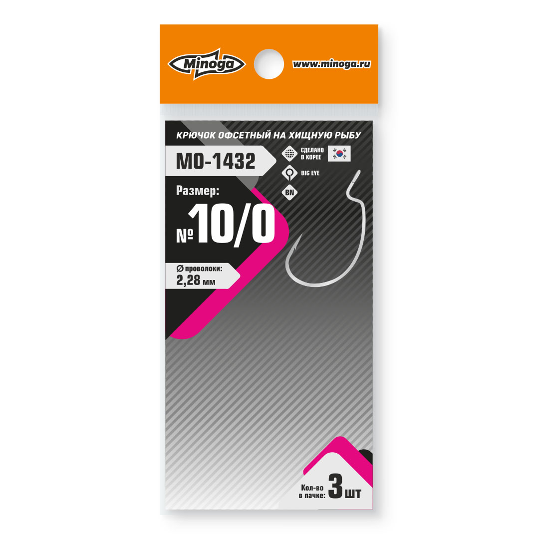Крючок Minoga MO-1432 Офсетник №10/0 (3 шт)
